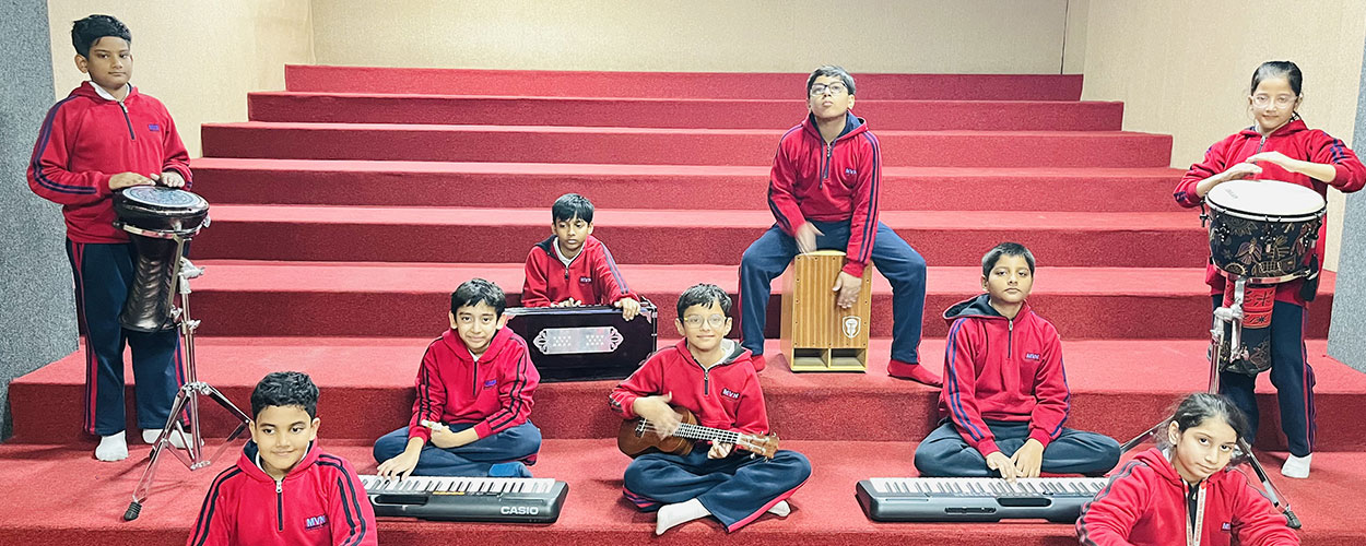 MVN 88 adopts a transformative process rooted in an inspiring holistic approach while planning its creative curriculum. The impressive, well equipped, large aesthetic work studios for Art, Craft, Music and Dance ensures that our young learners are facilitated with a lavish congenial environment to focus and learn varied skills. It provides the students an opportunity for expression of artistic, literary, oratorical and technological talent. The magnificent open Amphitheatre and the Audio visual room give the students space to showcase their skills. They are used as venues for hosting events, contests, seminars, workshops and school competitions.
