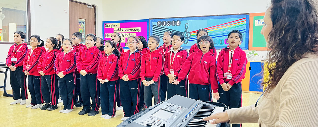 Our vision is to provide quality education for all that nurtures creativity, critical thinking and holistic development. Guided by the E-Square philosophy of MVN, we emphasize a balance between Education and Exercise, ensuring that students grow intellectually, physically and emotionally into confident global citizens. Our Vision is to be recognized as a Centre of Excellence in the field of education by meeting the challenges of the present & the future.
