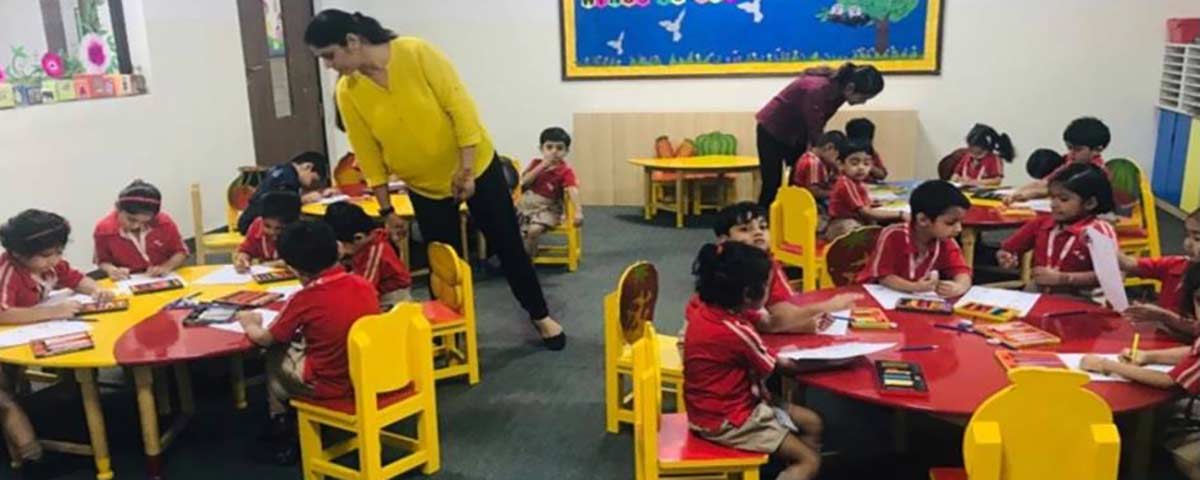 We follow a distinctive two-teacher model in our pre-primary classes, where every child is guided by both a Mother Teacher and a Co-Teacher. This ensures a nurturing bond alongside engaging, interactive learning. With a carefully maintained ratio , each child receives personal attention, emotional security and joyful learning experiences in a balanced environment.